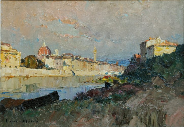Bord de L'Arno, Florence Huile sur Panneau - 55x38cm