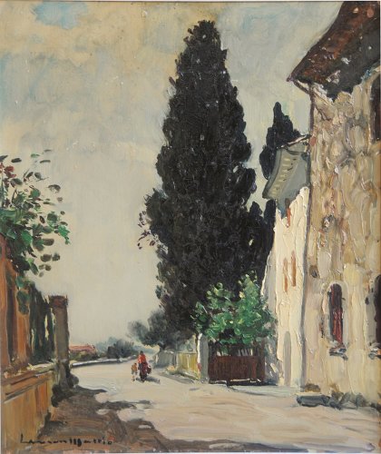 Solliès-Ville, Entrée du Village Huile sur Panneau - 55x46cm