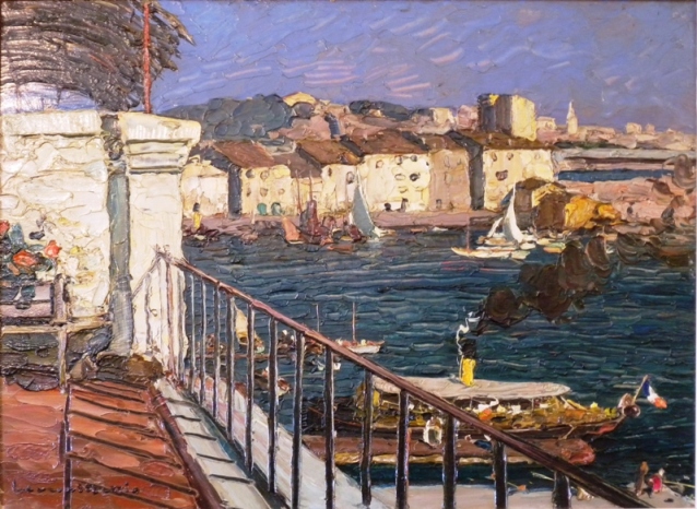 Le vieux Port de Toulon vu d'une terrasse 12P Huile sur panneau - signé bas gauche