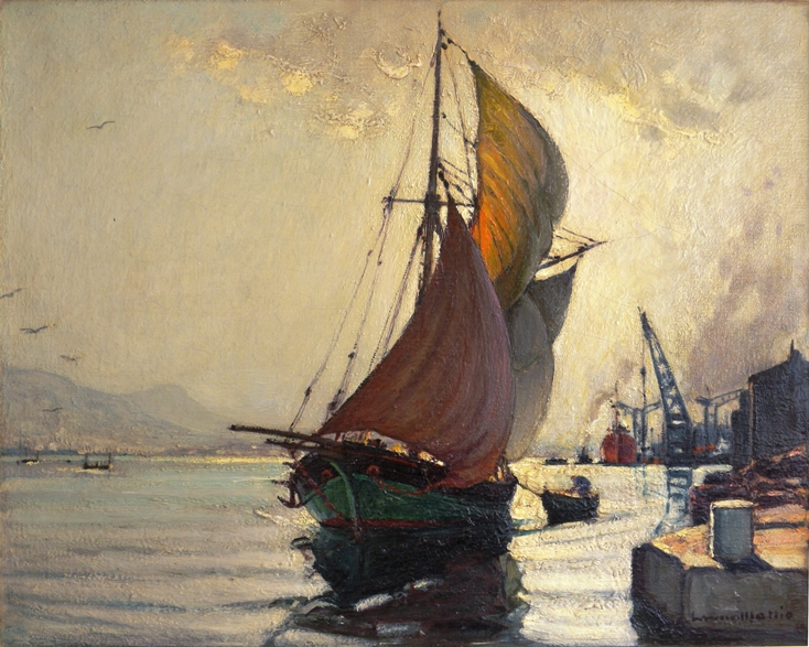 Tartane entrant au port de La Seyne Huile sur toile - 92x65 cm